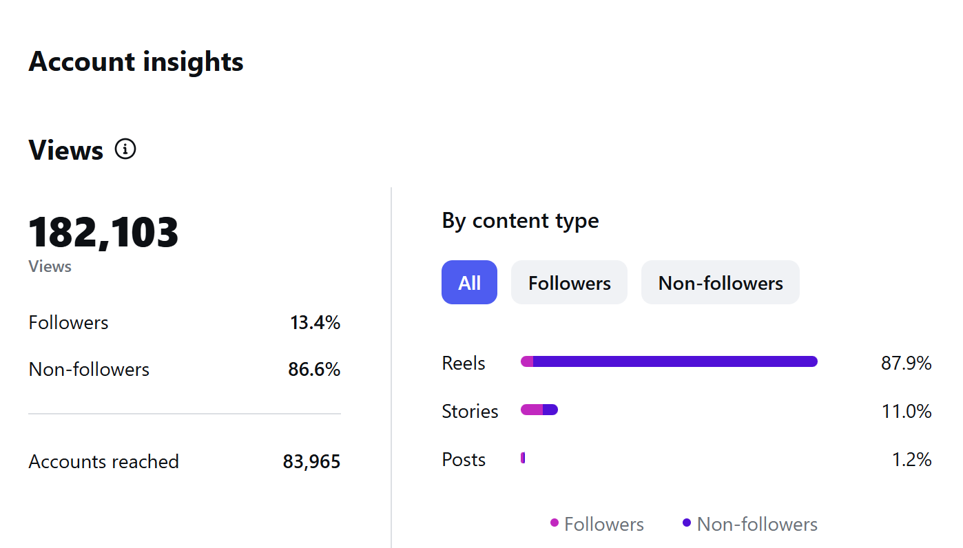 My Instagram insights for the past 30 days.